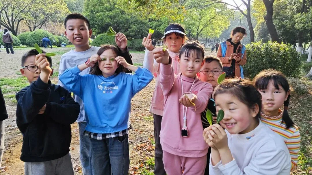 在包公园大草坪,孩子们用放大镜观察植物的微观细节,验证“世界上没有两片完全相同的叶子”这一科学论断。生态科普教育课堂被搬到到大自然,在鲜活的场景中入脑入心。